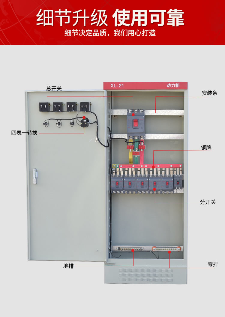 XL-21動力配電柜屬于二級配電柜主要安裝在總配電房到終端箱之間對電能進行分配。有利于對用戶對電能的分散控制。同時也可作為電機以及其他機器設(shè)備的控制終端。廣泛的用在工廠小區(qū)以及市政工程